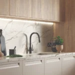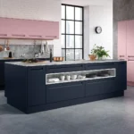 A handleless kitchen design features no handles on the cabinets, cupboards or drawers, creating a clean, uncluttered look which is entirely modern and minimalistic.